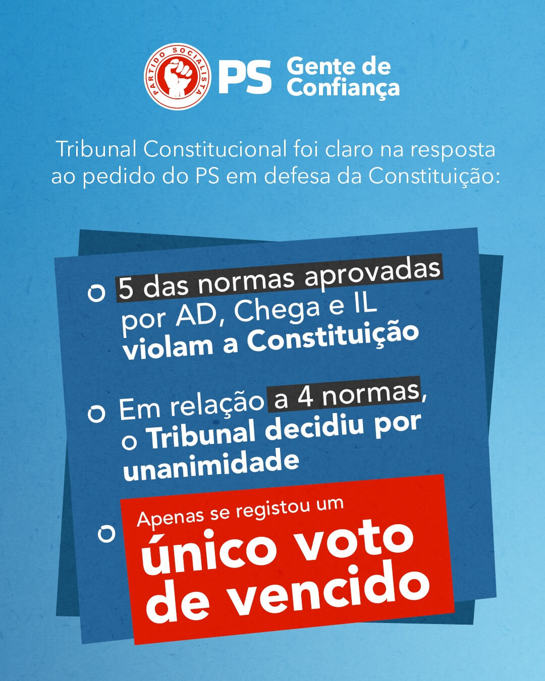 Tribunal Constitucional chumbou a Lei da Nacionalidade Partilhar é apoiar!PartilharTweetLinkedIn O Governo avançouO PS alertouO Tribunal Constitucional chumbouA Constituição não é um detalheÉ um limiteÉ uma garantia #PSFAUL #PartidoSocialista #PS #GentedeConfianças